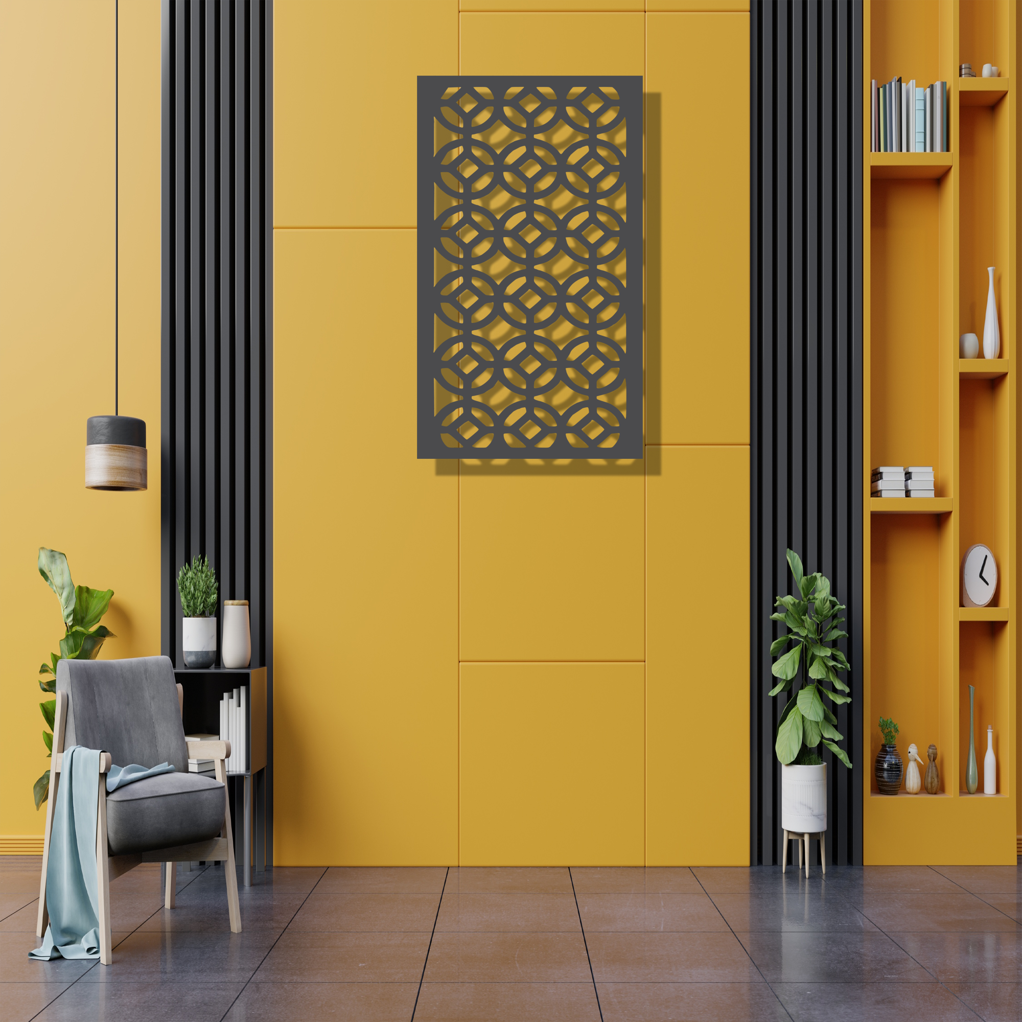 Duble Circle Wooden Wall Decor Wall Art is a unique and exquisite piece of home decor crafted with precision and care. This stunning wall art is made from one side laminated Medium Density Fiberboard (MDF), a versatile and durable material, using the advanced CNC (Computer Numerical Control) cutting technology.
