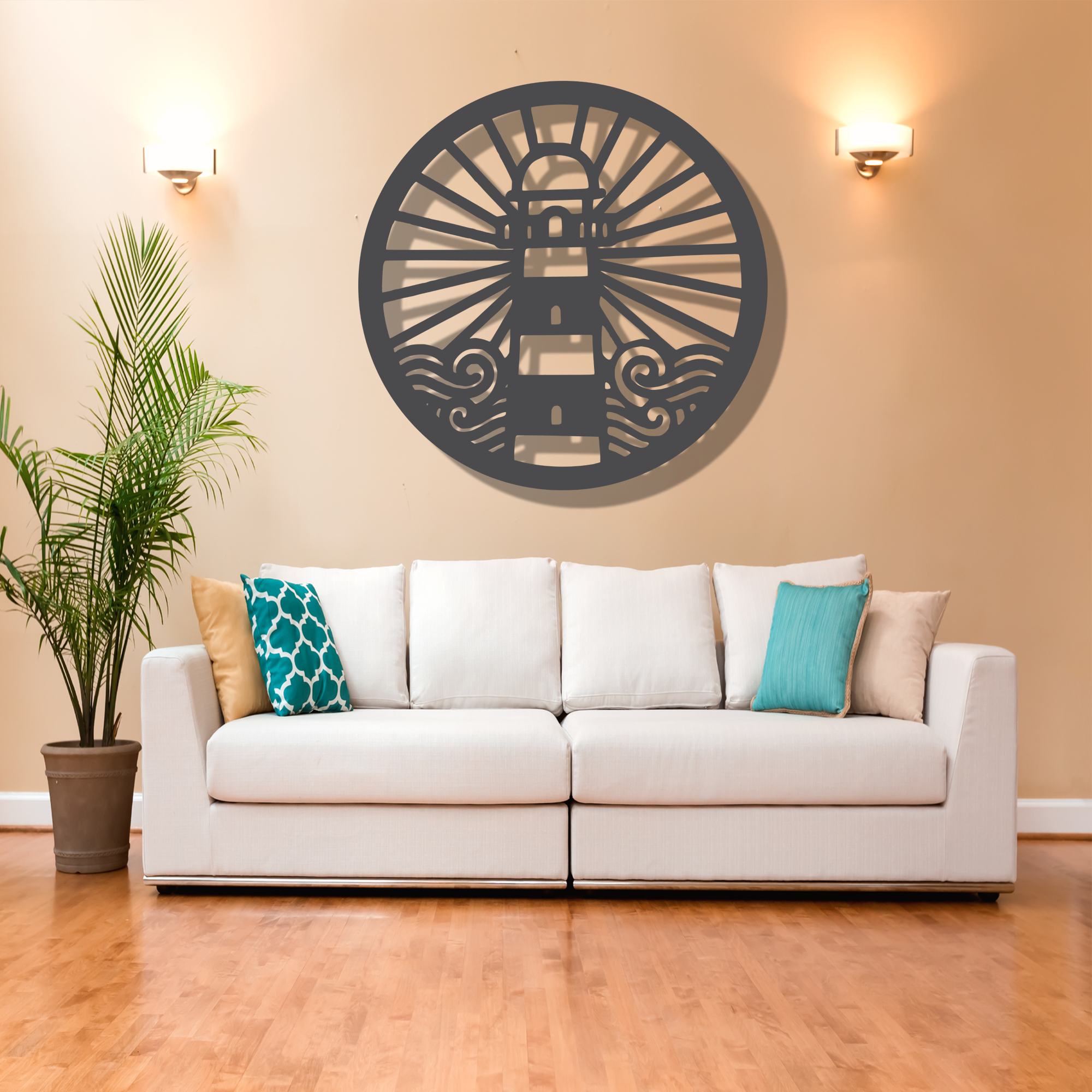 The sacred symbol “Light Lighthouse ,” representing the sound of the universe in Hinduism, Buddhism, and other spiritual traditions, is elegantly captured in this wooden wall decor. The choice of MDF ensures a smooth and uniform surface, providing an ideal canvas for the intricate C.NC cutting process