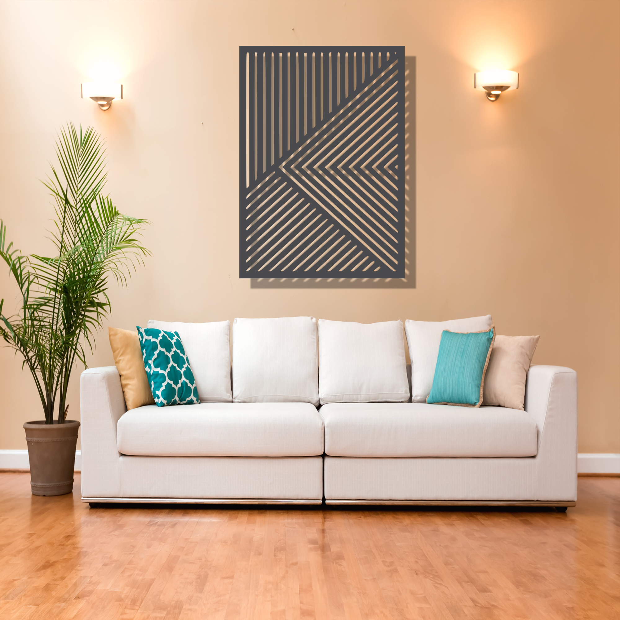 Trangle Line Wooden Wall Decor Wall Art is a unique and exquisite piece of home decor crafted with precision and care. This stunning wall art is made from one side laminated Medium Density Fiberboard (MDF), a versatile and durable material, using the advanced CNC (Computer Numerical Control) cutting technology.