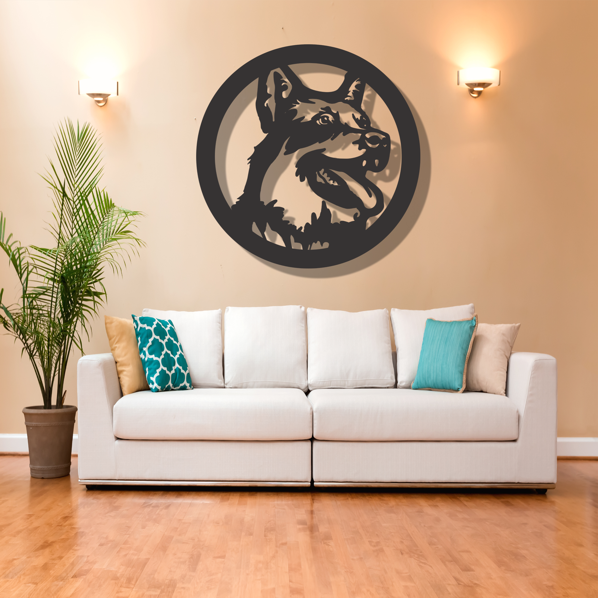 The sacred symbol “American Dog” representing the sound of the universe in Hinduism, Buddhism, and other spiritual traditions, is elegantly captured in this wooden wall decor. The choice of MDF ensures a smooth and uniform surface, providing an ideal canvas for the intricate CNC cutting process.