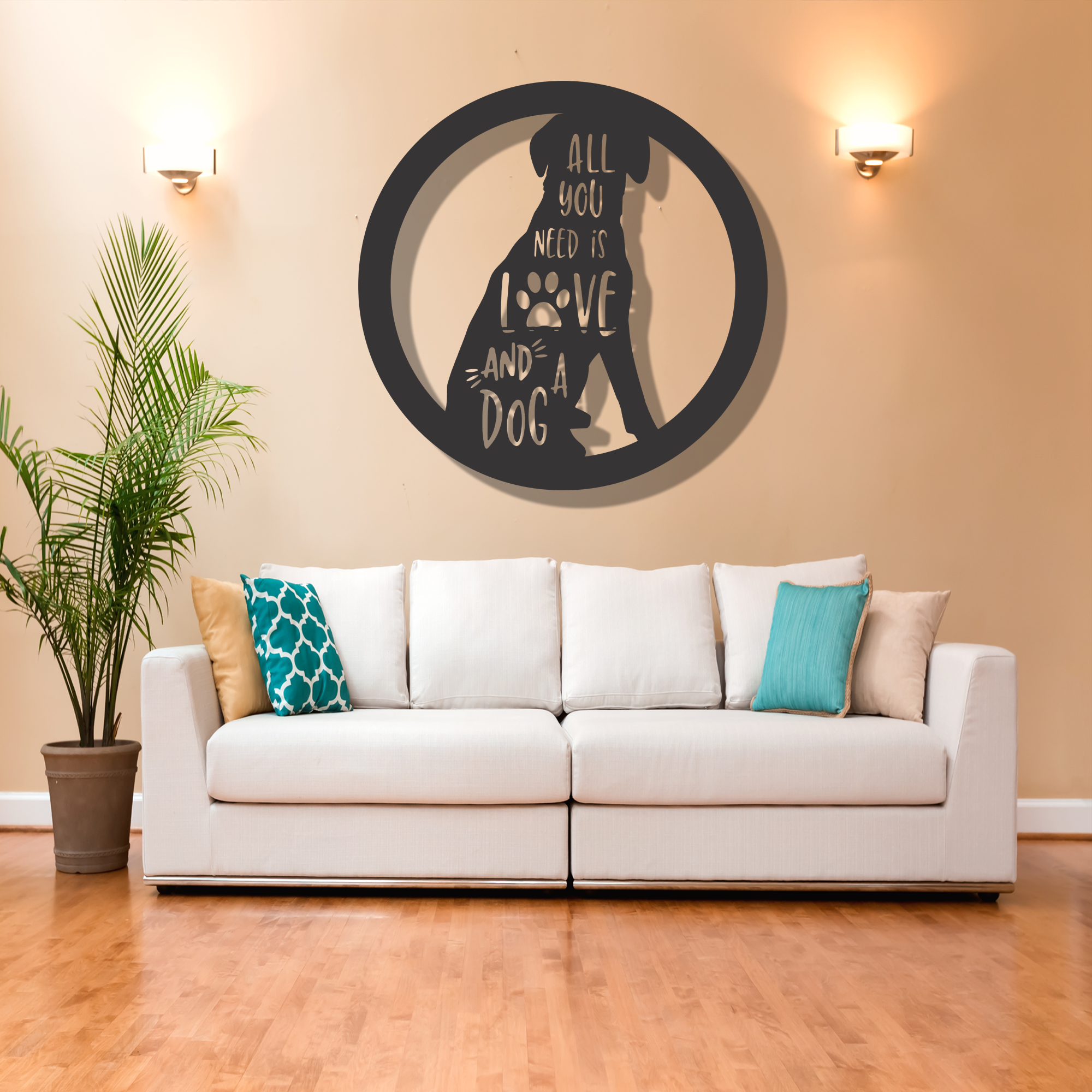 Lovely Dog Wooden Wall Decor Wall Art is a unique and exquisite piece of home decor crafted with precision and care. This stunning wall art is made from one side laminated Medium Density Fiberboard (MDF), a versatile and durable material, using the advanced CNC (Computer Numerical Control) cutting technology.