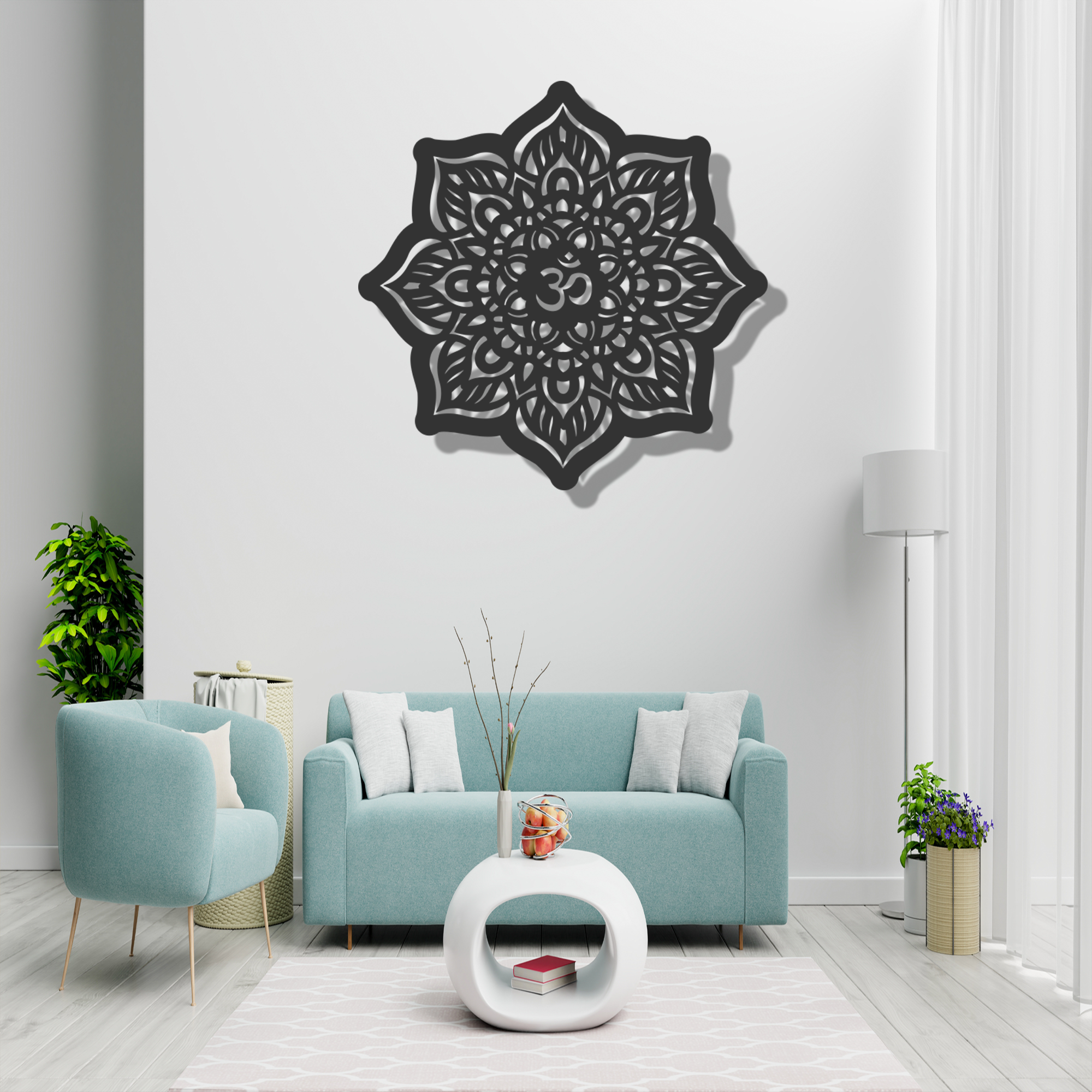 The sacred symbol ” om-jali ,” representing the sound of the universe in Hinduism, Buddhism, and other spiritual traditions, is elegantly captured in this wooden wall decor. The choice of MDF ensures a smooth and uniform surface, providing an ideal canvas for the intricate CNC cutting process.